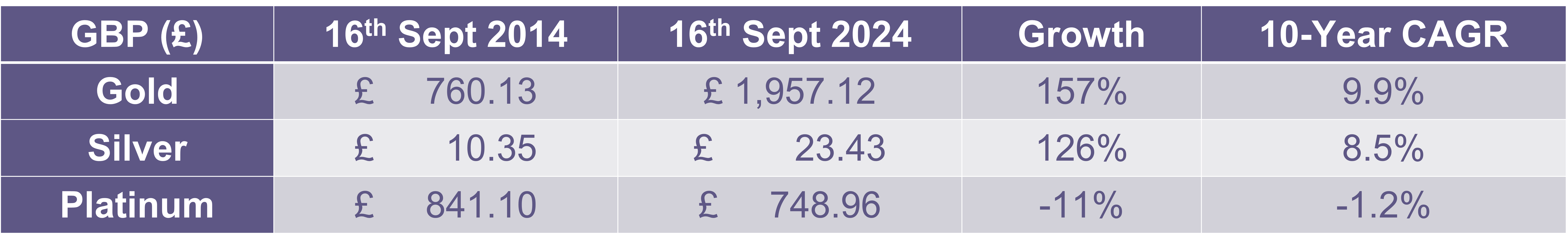 Gold breached the $2,500/oz mark for the first time in August 2024 as expectations that the US Federal Reserve would soon cut interest rates rose. Using the London Bullion Market Association’s prices, gold has so far delivered growth of 25% in USD and 20% in GBP in 2024 (2nd January AM price and 16th September PM price), while silver has risen 29% in USD and 24% in GBP over the same time frame. At the time of writing, the Bank of England and the European Central Bank have begun cutting interest rates, while the world awaits an imminent decision from the US Federal Reserve. Traditionally gold is thought to perform well during low interest rate environments as the opportunity cost of holding gold versus government bonds is reduced.