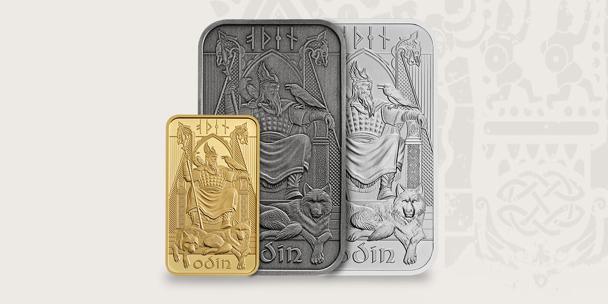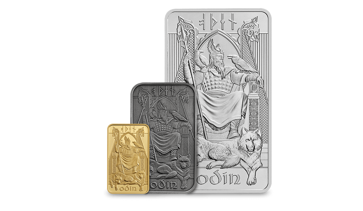 From Odin’s gold ring Draupnir, which drips eight new gold rings every ninth night, to Glasir, the grove in front of Valhalla whose foliage consists entirely of red gold, precious metals often appear in Norse mythology. Now, we honour these powerful and alluring figures with a new collection of minted bullion bars, available in gold and silver.