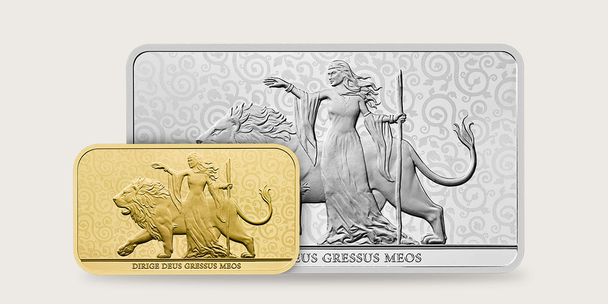 A stunning interpretation available in a range of gold and silver, including a 100oz silver bullion bar.