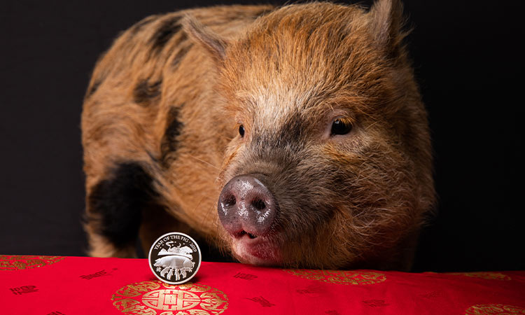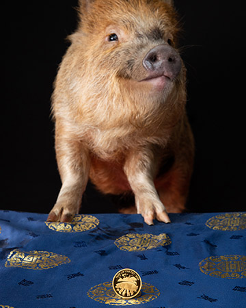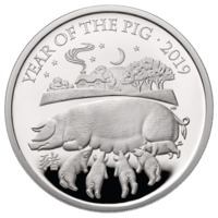 The Year of the Pig 2019 is the sixth design in the series, and is the twelfth and final sign of the Chinese zodiac, appearing once every 12 years. Harry Brockway, the coin’s designer, has ensured qualities of people born in the Year of the Pig are evident in his design. Behind the sow, who is lying comfortably with her children who are feeding, is a countryside landscape at night, featuring a traditional country home. This design shows the generosity, compassion and diligence associated with people born in the Year of the Pig, and defines their relationships with those close to them. The country home signifies the trait of feeling calm, through the drowsy night sky and smoke emanating from the warm fire within the home.