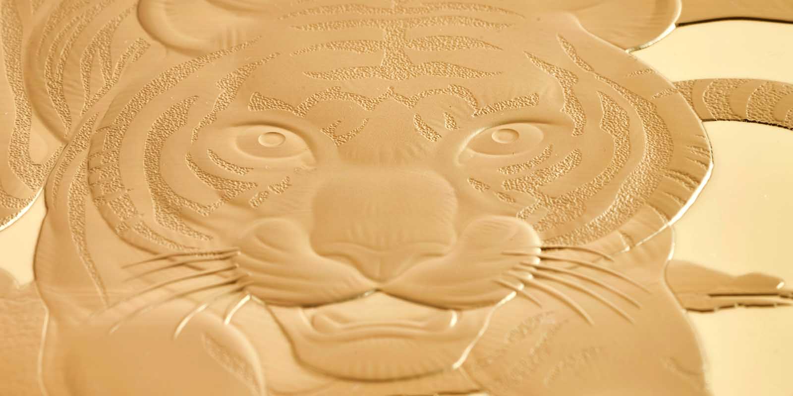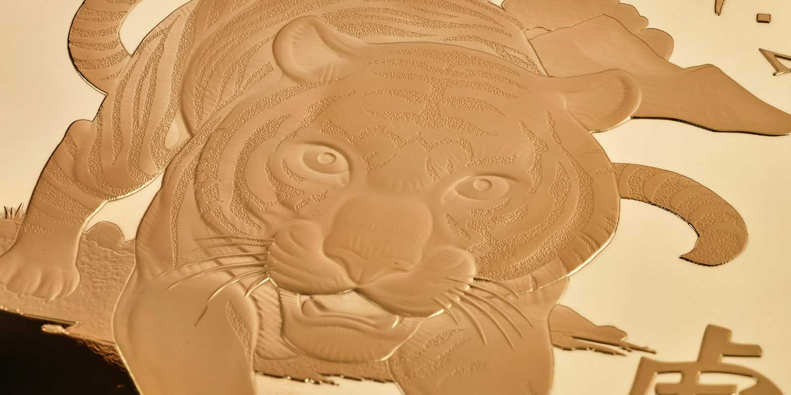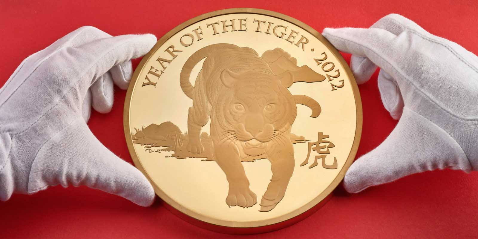 An exclusive 8kg gold proof coin to celebrate the Year of the Tiger as part of its Masterworks coin range and popular Shēngxiào collection. The 8kg gold proof coin featuring a design to celebrate Chinese New Year is a one-of-a-kind collector’s item made using a combination of traditional skills and innovative technology and is the largest coin ever produced as part of The Royal Mint’s Shēngxiào collection.