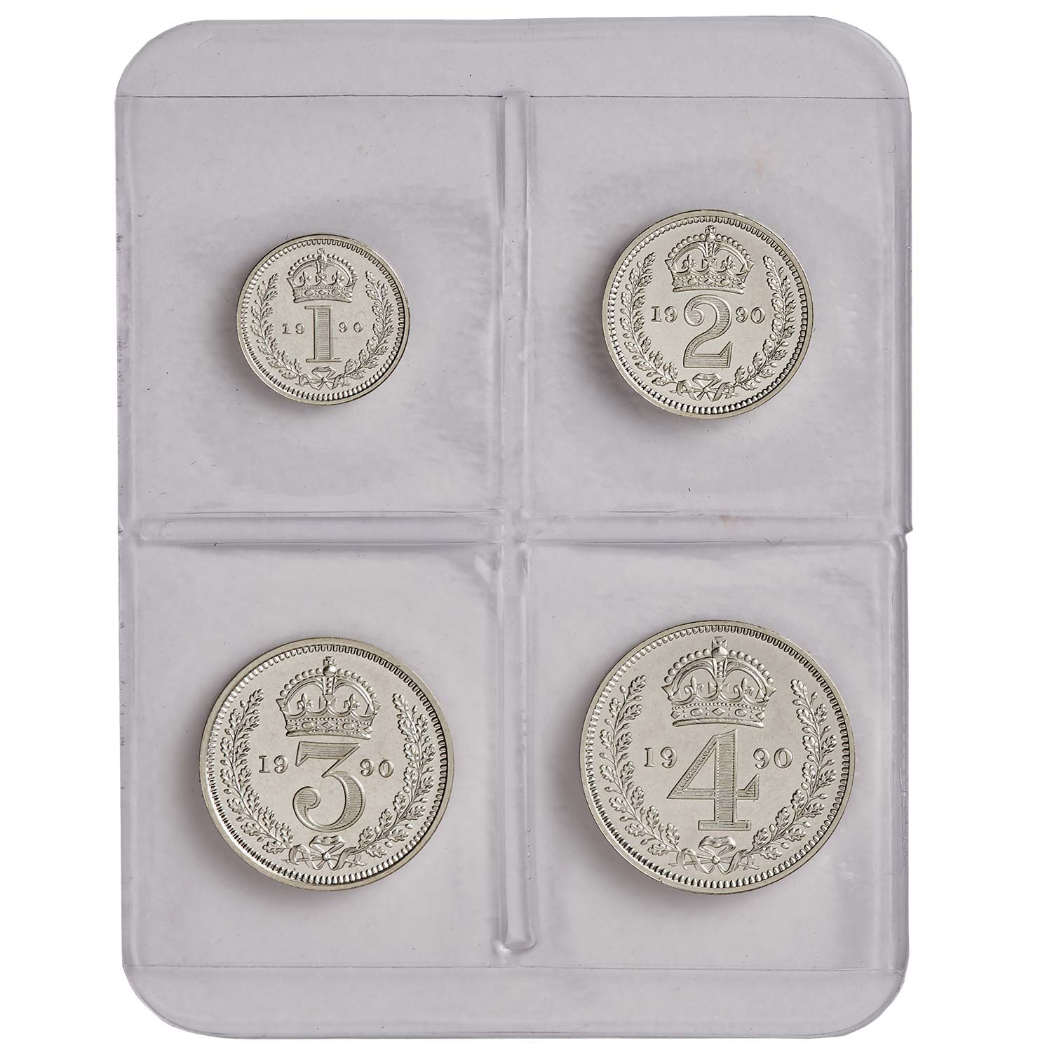 Elizabeth II (1952-), silver Maundy set, 1990, Four, Three, Two and One New Pence, each with young laureate head of Queen right, legend and beaded border surrounding, +ELIZABETH.II. DEI. GRATIA. REGINA. F:D: rev. crowned mark of value with date either side all within oak wreath (ESC 2607; S.4211). Mint state