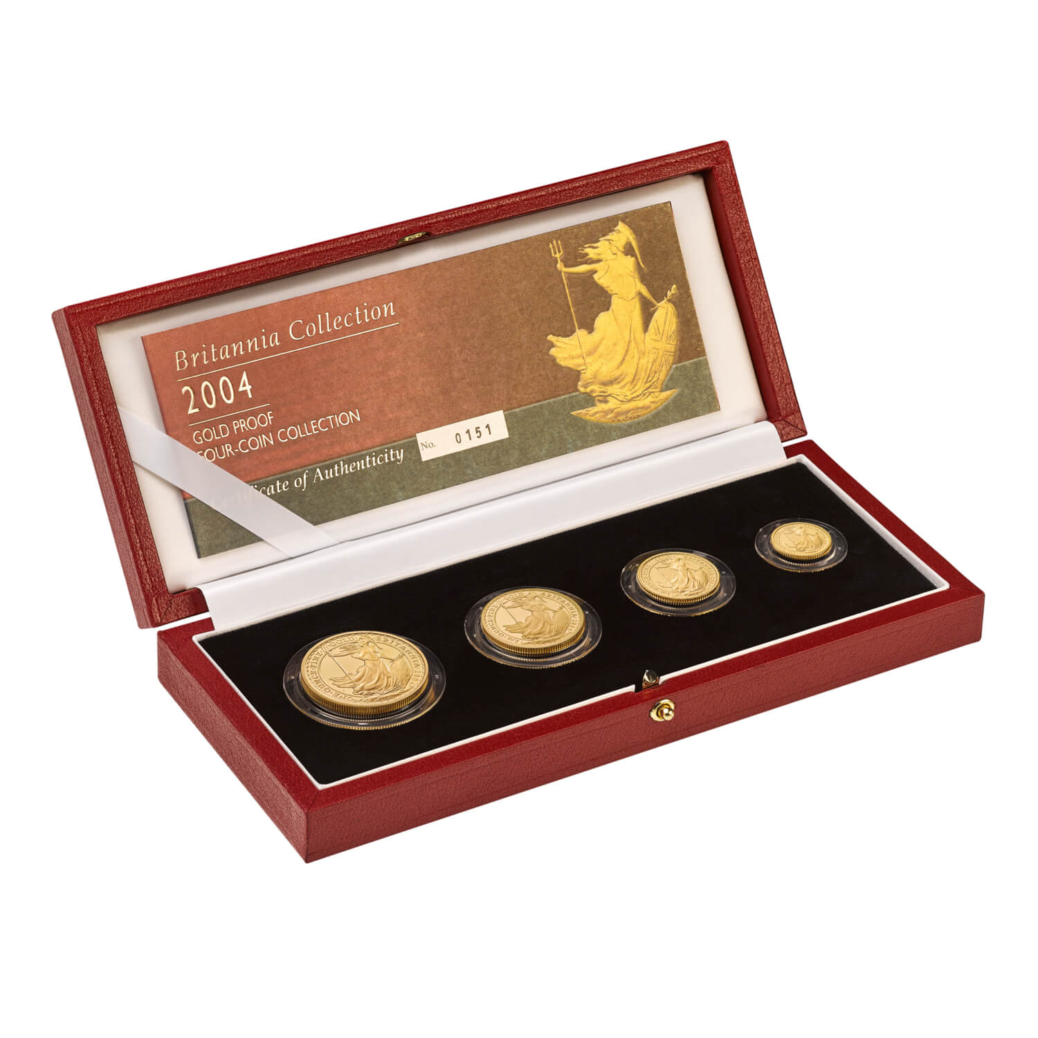 Issued in 2004, this four-coin set includes four denominations of the Britannia coin: £100, £50, £25 and £10. Only 1,250 of these sets were made, making them highly collectable.