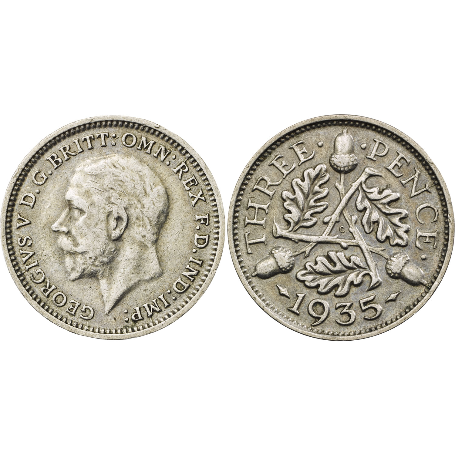 A three-coin set charts the evolution of the threepence