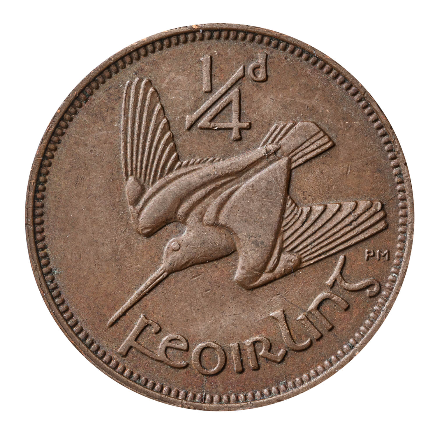 Although the wren didn’t feature on these coins for the Irish Free State, it did become the centre of a beloved design that featured on the British farthing. When Edward VIII acceded to the throne, he requested that the reverse designs for his definitive coins featured modern designs rather than traditional heraldic symbols. Although Edward VIII abdicated before his coins were produced for circulation, it was decided that these designs should feature on the new coinage of George VI instead.