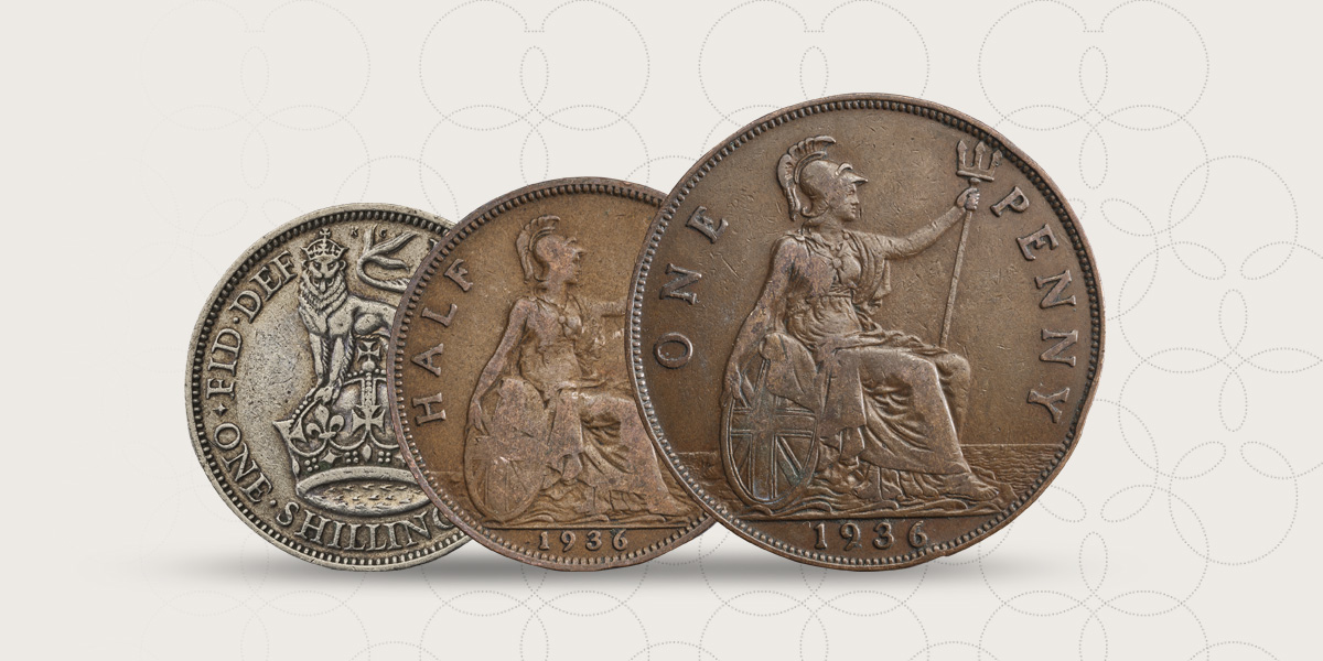 Features coins struck during times of conflict to those produced for decimalisation.