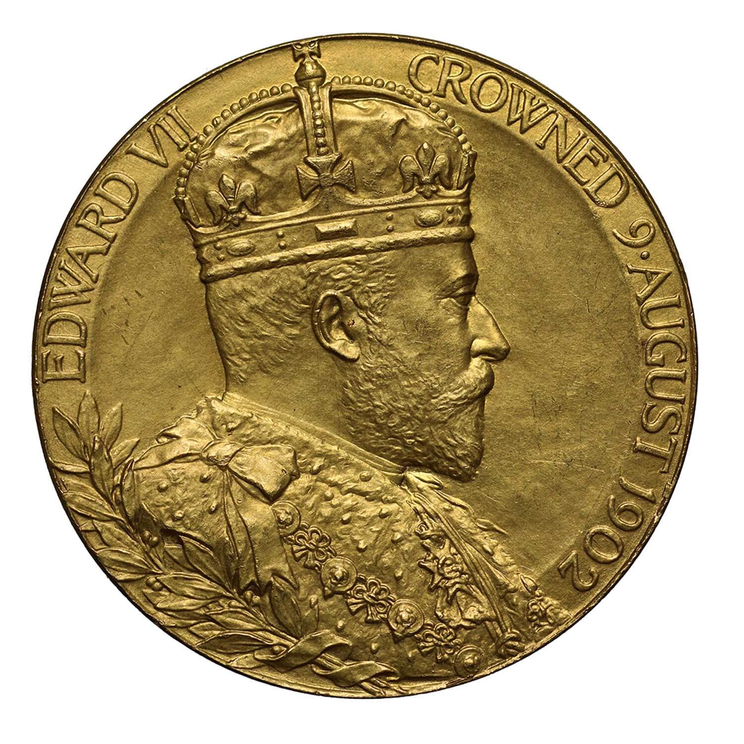 In 1901, Edward VII became king following the death of Queen Victoria. The king only reigned for nine years, in contrast to his mother who held the title of Britain's longest reigning monarch until Elizabeth II surpassed the record in September 2015. Although Edward became king in 1901, his first coins were not struck until 1902 and featured the portrait of the king, known as the 'bare head', created by the engraver of this medal, George William de Saulles.