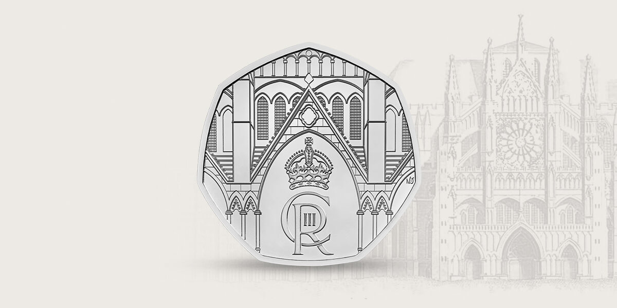 The reverse design represents the exterior of Westminster Abbey, where British coronations have taken place since 1066.