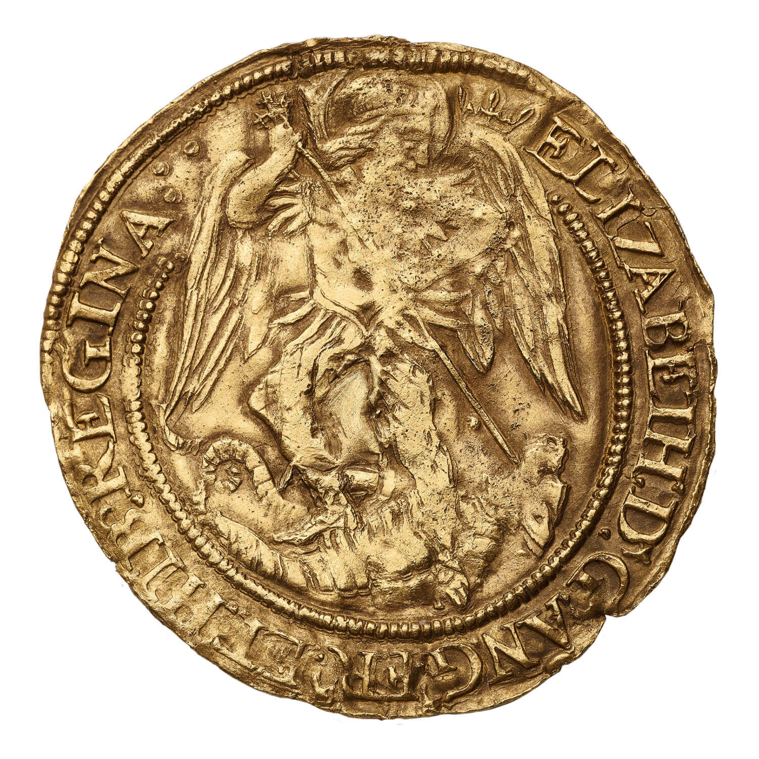 In Fine+ condition, this hammered coin was produced at the Tower of London, the home of The Royal Mint between 1558 and 1603. A hammered coin required two dies, and the die featuring the obverse design had a spike in the base that could be placed in a block of wood. A fresh blank was placed on this, and the second die tool was hammered on top to impart both designs to the coin. This coin features the coronet mint mark to denote when and where this coin was struck.