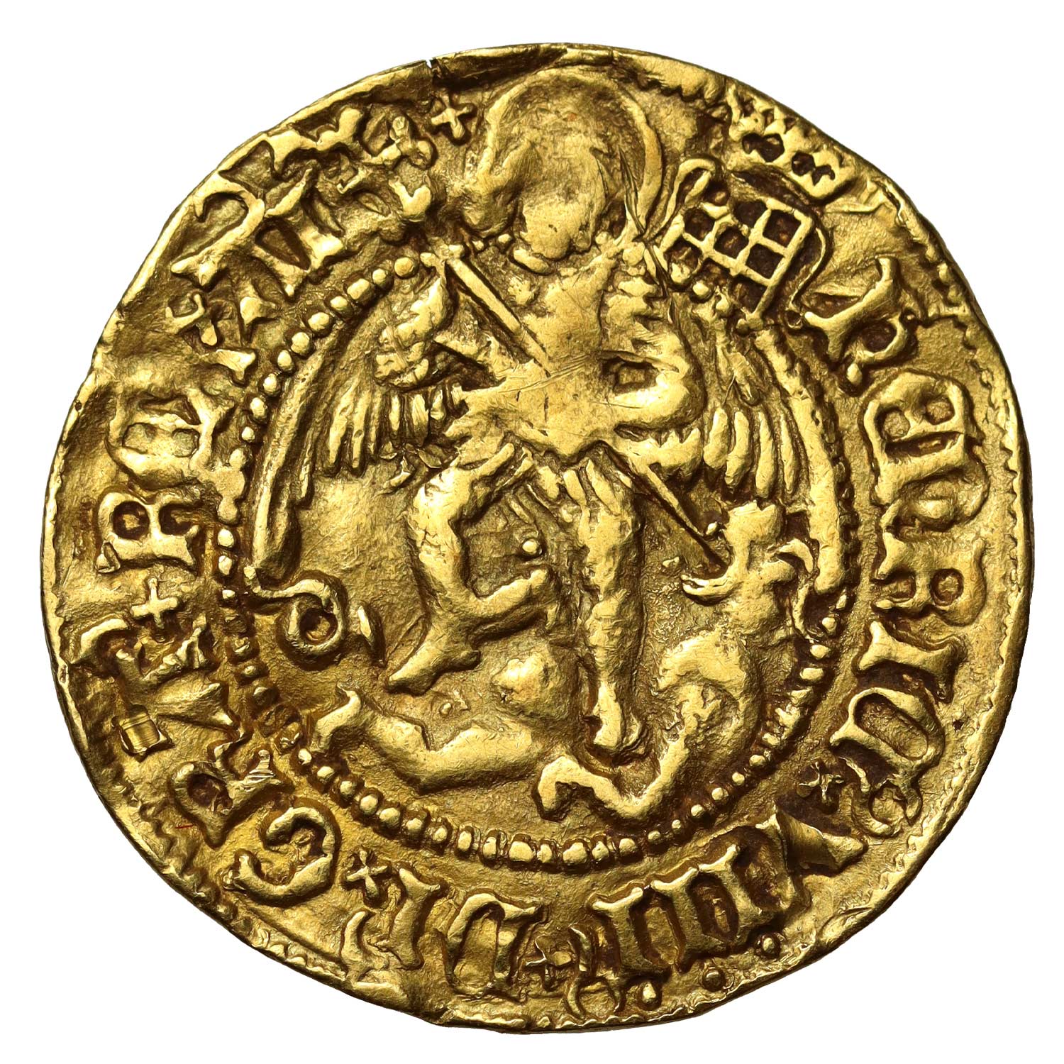 The obverse of the coin depicted the archangel Michael slaying a dragon representing the devil, which gave the denomination its name. Different designs appeared across the denomination and its fractionals throughout the time it was in circulation, but this religious iconography saw it become important in the popular consciousness. It was even thought that wearing the angel as a protective talisman could help to prevent illness, a tradition that evolved from the ‘royal touch’ ceremony.