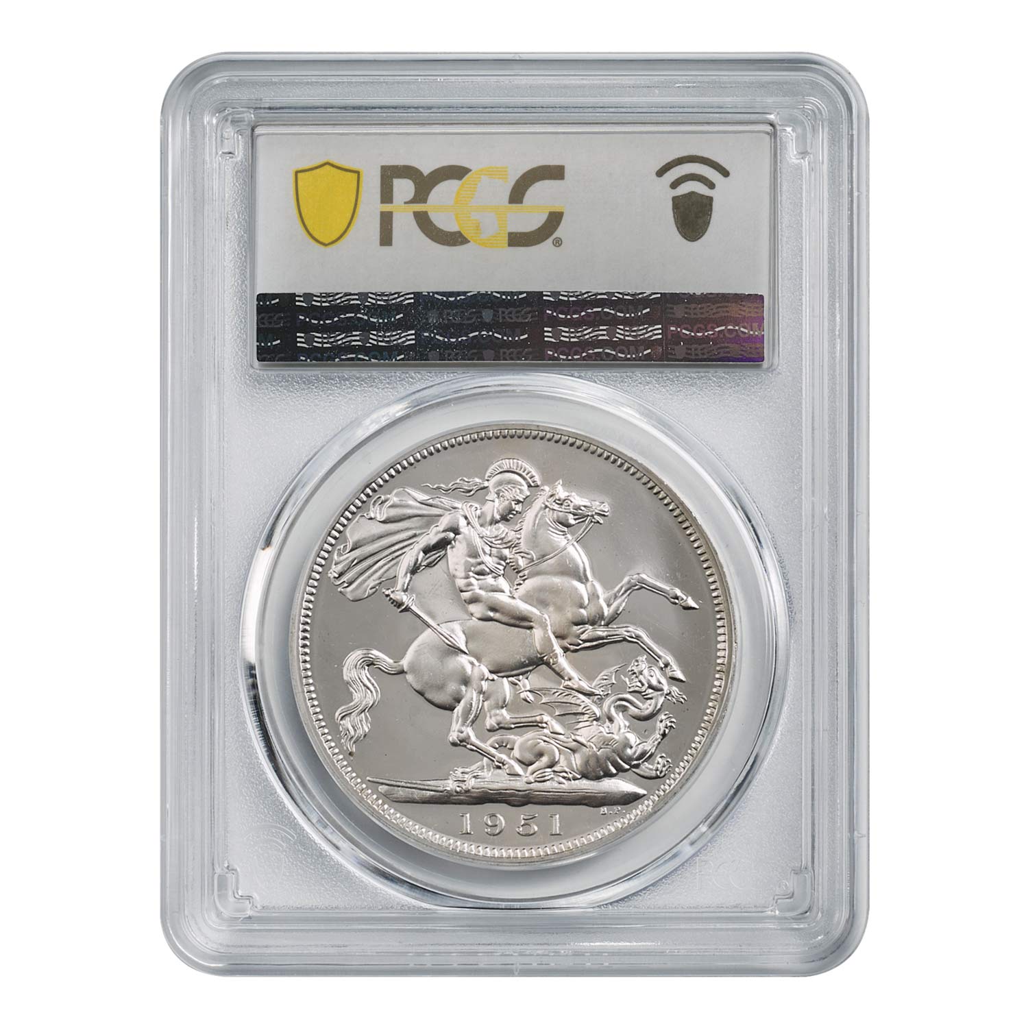 Intended as a ‘tonic for the nation’, and to lift the country’s spirits following the end of the Second World War, the Festival of Britain was a spectacular cultural event to showcase British manufacturing and design. To celebrate the festival, we released a commemorative crown in 1951. This was one of only two crown types issued during the reign of George VI, with the other released in 1937 to mark the king’s coronation). Commonly referred to as the ‘Festival of Britain crown’, it features Humphrey Paget’s portrait of the monarch on the obverse and Benedetto Pistrucci’s St George and the dragon design on the reverse.
