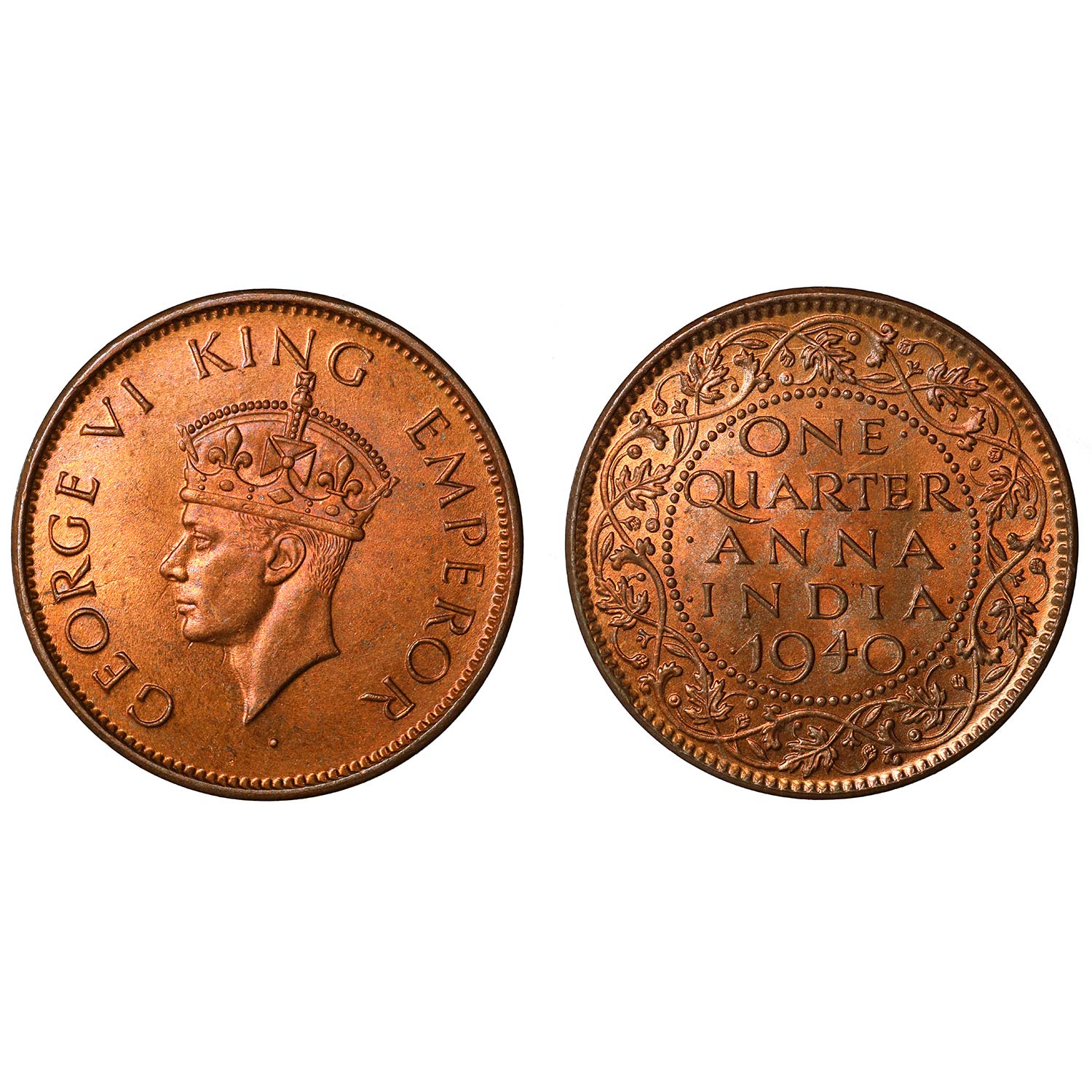This Quarter Anna was produced by The Royal Mint during the reign of George VI for use in India when it was part of the British Empire. Struck in 1940 in Bronze this coin is still in Mint State as the day it was made and has attractive red surfaces.