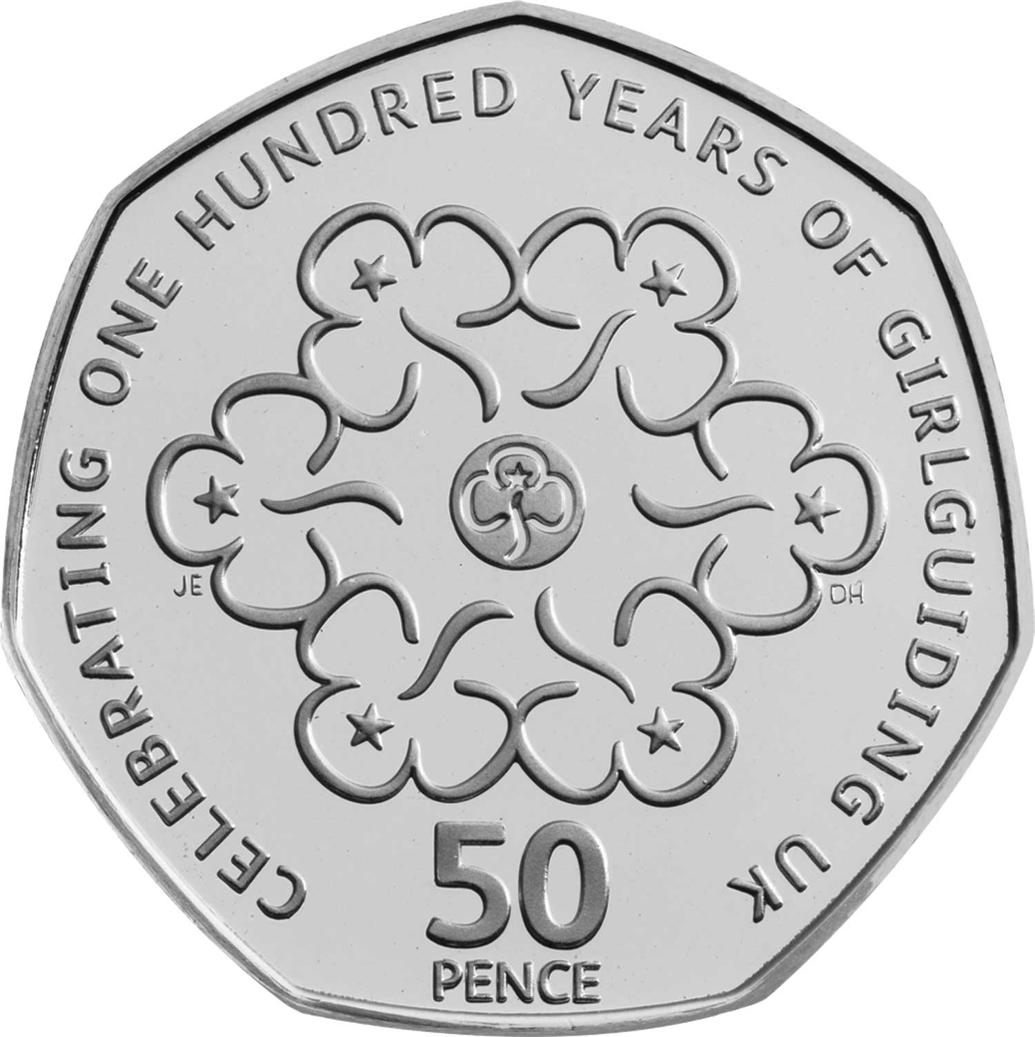 Girlguiding emerged in the United Kingdom in 1910, initiated by Agnes Baden-Powell at the request of her brother Robert—founder of the 1907 Scouting movement. Designed to mirror Scouting’s principles while catering specifically to girls, the organization adopted the trefoil emblem symbolizing its threefold promise: to serve the community, embrace spiritual values, and uphold personal integrity. This iconic symbol anchors a commemorative 50p coin marking Girlguiding’s 100th anniversary, celebrating its century-long legacy of empowering young women.
