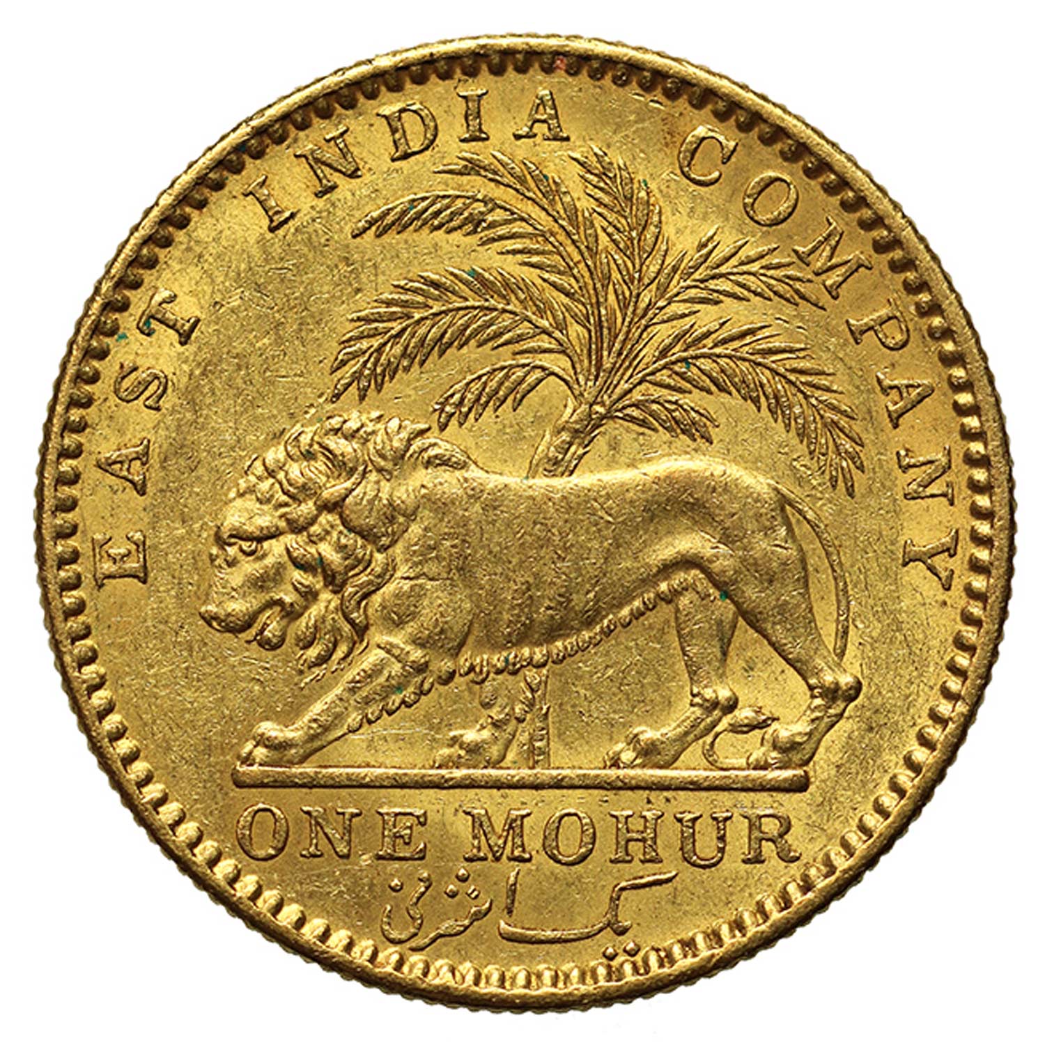 Stunning design showing the lion striding left, palm tree in background – the symbol of the East India Company.