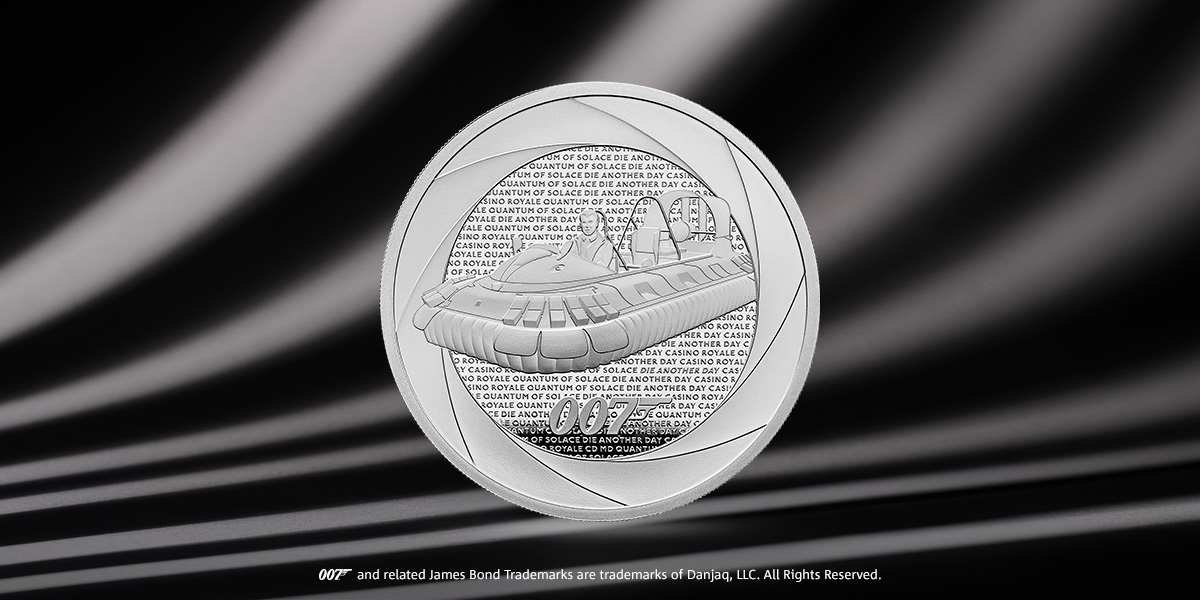 The fifth coin in the collection features the memorable hovercraft that appears in the opening sequence of Die Another Day.
