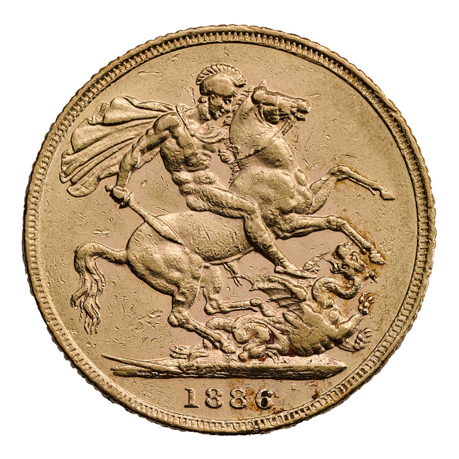 This Sovereign dates from 1886, the year in which the Statue of Liberty was dedicated in New York, Robert Louis Stevenson’s Strange Case of Dr Jekyll and Mr Hyde was first published, and William Ewart Gladstone was elected as Prime Minister for a third time.