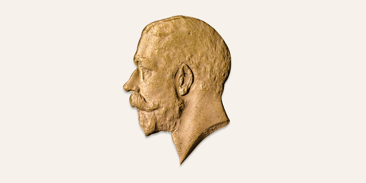 The king was an avid admirer of Mackennal’s design talents and actively encouraged his involvement in the commission for the new coinage portrait. However, the portrait was not without technical blemishes as Mackennal modelled the portrait at too high a relief, which created an imbalance and a consequent ghosting effect on some coins. This caused an outline of the effigy to appear on the reverse and served as an example to ensure that future coinage portraits were technically sound before commissioning their final use. Mackennal’s portrait of the king was nevertheless accomplished and well received, which is exemplified by its use on postage stamps and paper money too.