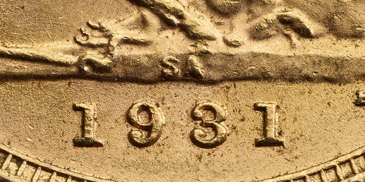 The branch mint in Pretoria, South Africa, was the last to strike Sovereigns after all others had ceased production. This was primarily due to South Africa – the world’s most prolific gold producer at the time – remaining on the gold standard after the UK and Australia had both abandoned it. However, the South African economy greatly suffered and ceased its adherence to gold on 27 December 1932.