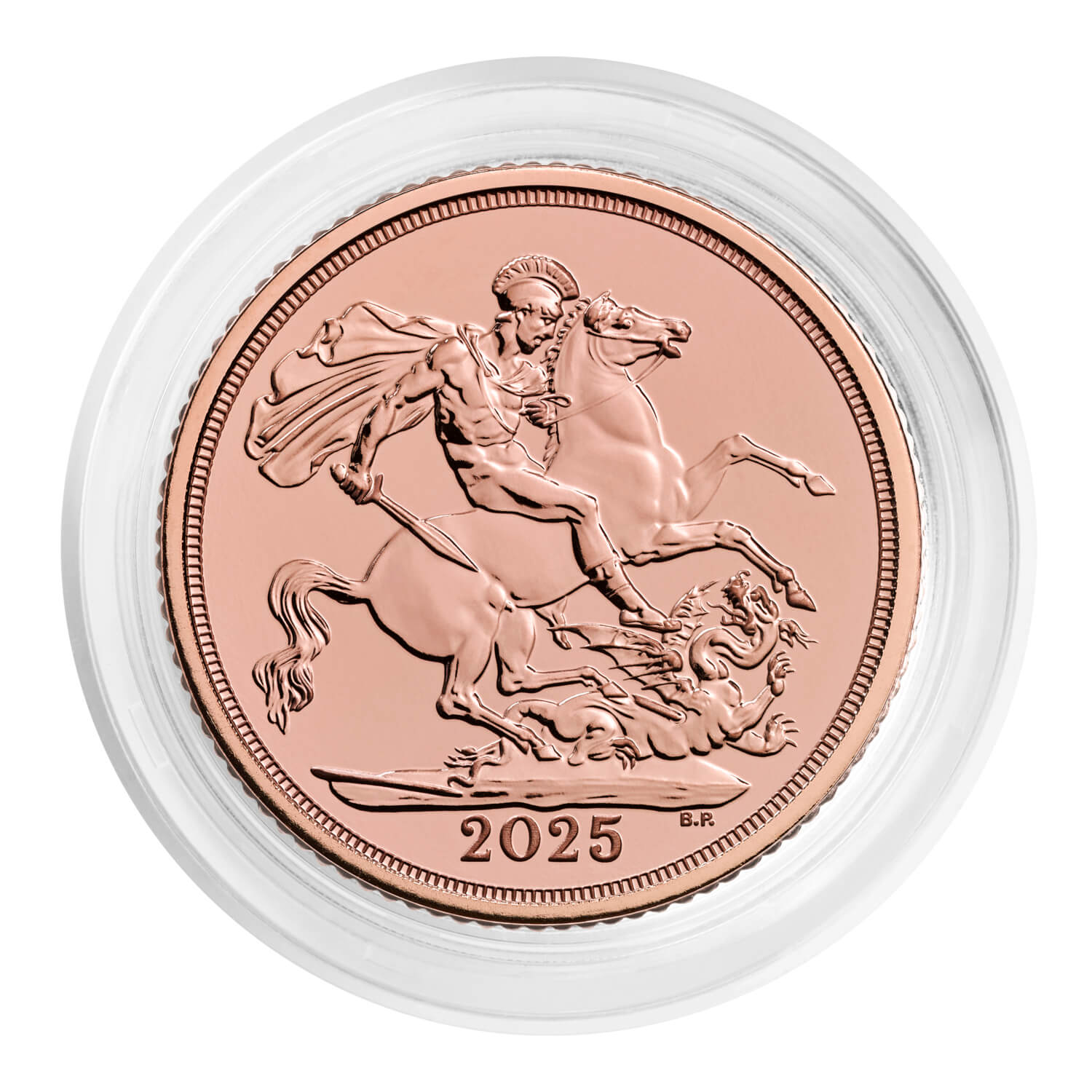 In 1817, The Sovereign was revived as part of the great coinage reform that followed the end of the Napoleonic Wars. Although only about half the size of the original, the new coin more than matched the beauty of its predecessor. The traditional heraldic reverse was abandoned in favour of St George and the dragon by the Italian engraver Benedetto Pistrucci - a numismatic classic that has become synonymous with The Sovereign and endures to the present day.