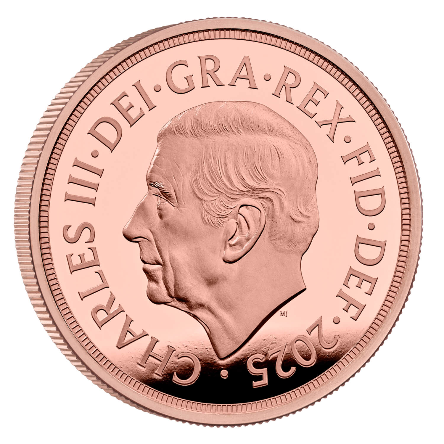 The Sovereign 2025 pays tribute to the coin’s rich history and Jean Baptiste Merlen’s Royal Arms design that first appeared on The Sovereign 200 years ago. Faithfully remastered using state-of-the-art technology, this five-coin gold Proof set includes 2025 editions of The Sovereign, Half-Sovereign, Quarter-Sovereign, Double-Sovereign and Five-Sovereign Piece. Each coin features Merlen’s Royal Arms design on the reverse and the official coinage portrait of His Majesty King Charles III, designed by Martin Jennings, on the obverse, marking the first time these designs have appeared together on The Sovereign. These coins are also noteworthy as they are the last editions of The Sovereign to be struck in rose gold at The Royal Mint.
