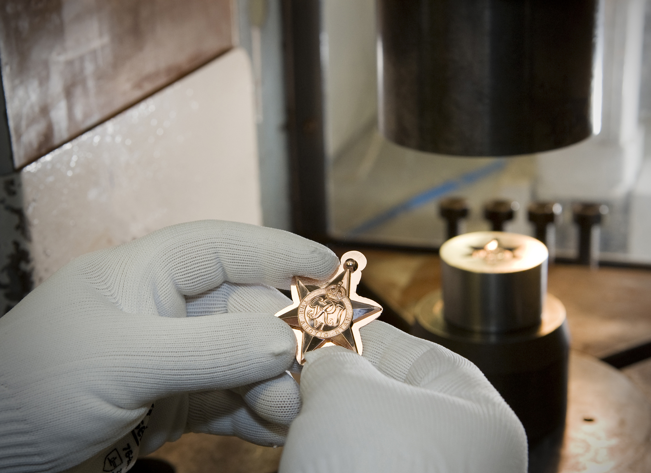 Among the most prestigious military medals we make are the Service Crosses or Gallantry Medals, such as the George Cross, the civilian equivalent of the Victoria Cross; and the Military Cross, made here since its creation in 1914.