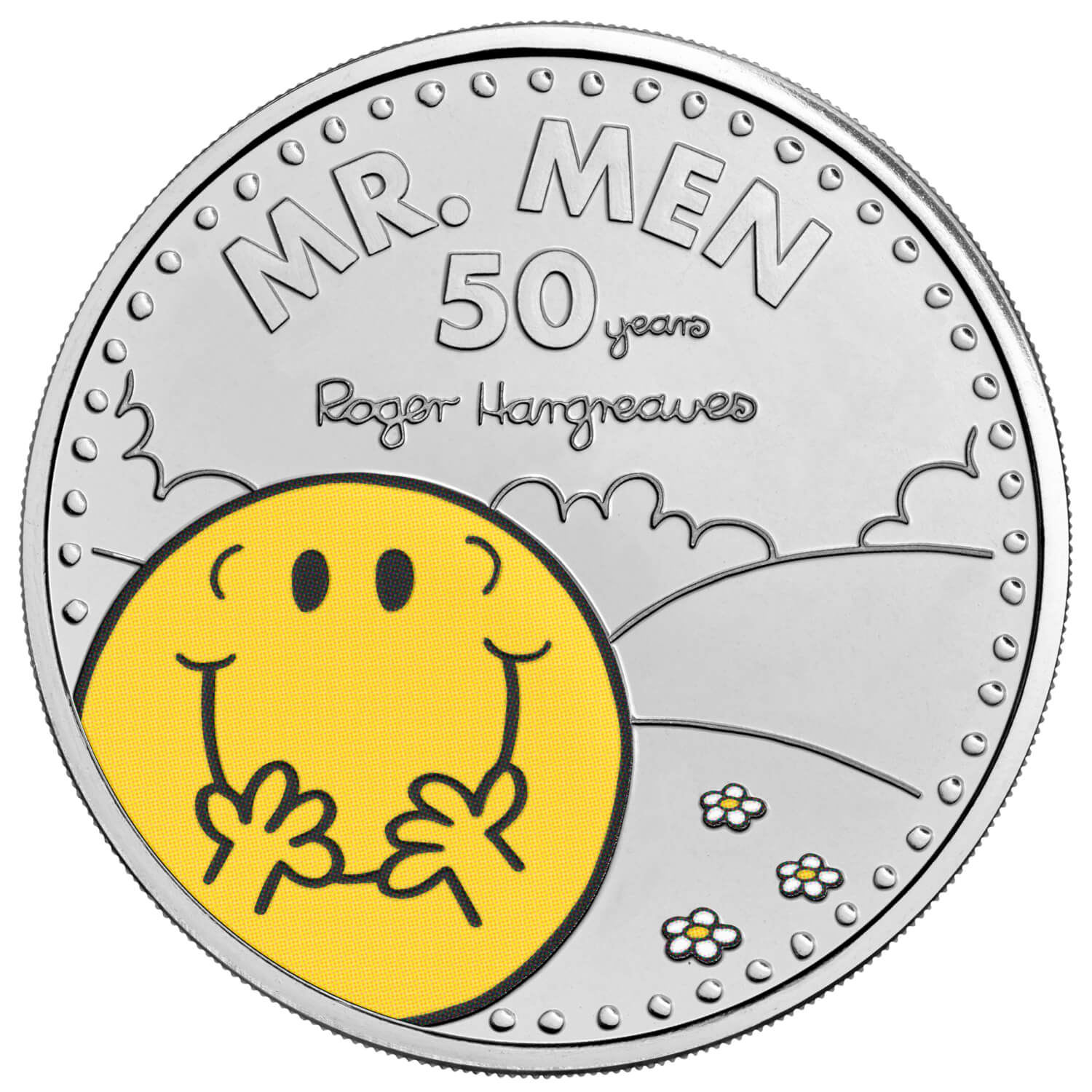 Mr Happy The 50th Anniversary of Mr Men Little Miss 2021 UK £5 Brilliant Uncirculated Coloured Coin |