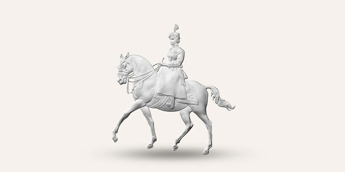To mark the Platinum Jubilee, the experienced coinage artist John Bergdahl created a celebratory portrait for a commemorative coin collection honouring the occasion. Reminiscent of the 1953 coronation crown created by Gilbert Ledward RA, the design featured Her Majesty on horseback in the uniform of the Horse Guards.