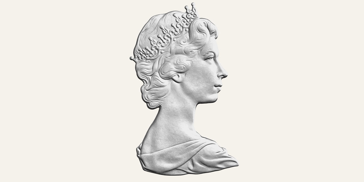 The Arnold Machin coinage portrait, introduced in 1968 in the UK.