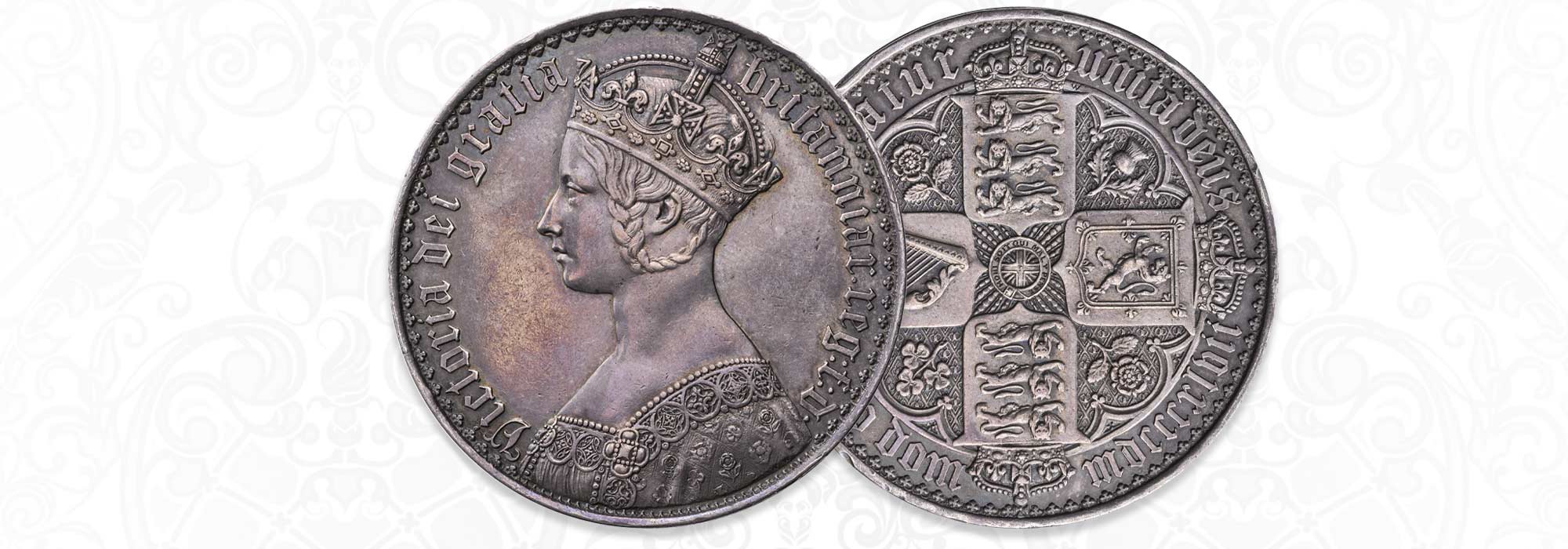 During the Victorian era, specifically in the mid nineteenth century the gothic style was revived. The Victorians revered the chivalry and romance associated with the style. So much so that it grew to influence aspects of Victorian life including architecture, literature, furniture, clothing and coinage. The Gothic style was wildly popular during the Victorian era, appearing not just on the coin’s people used but also in the buildings they lived and worked.