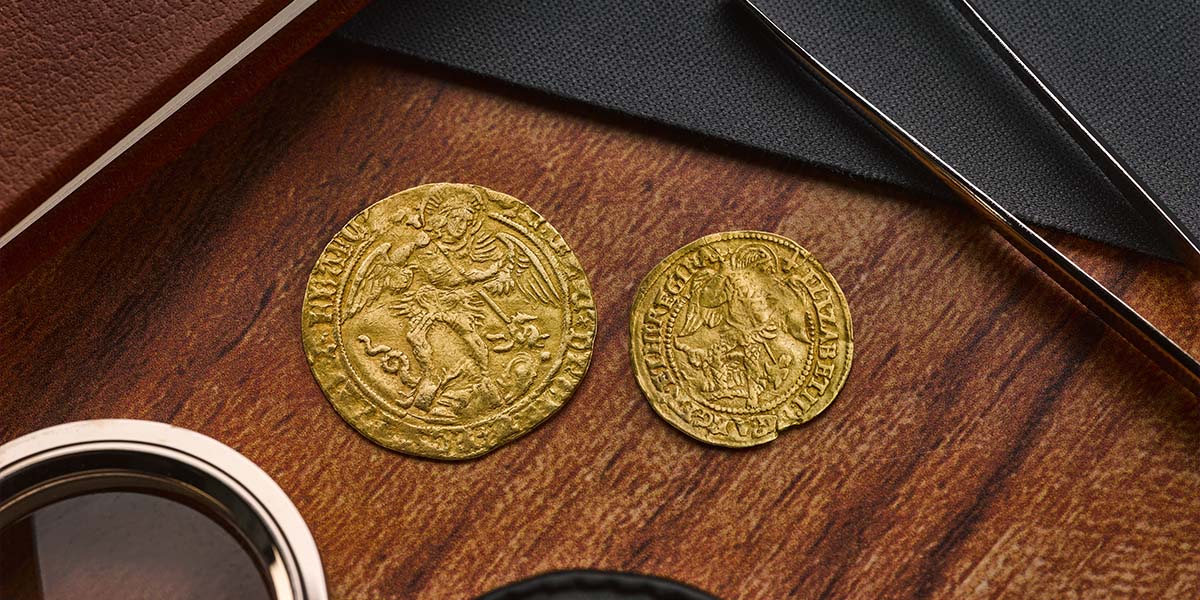 The obverse of the coin depicted the archangel Michael slaying a dragon representing the devil, which gave the denomination its name. Different designs appeared across the denomination and its fractionals throughout the time it was in circulation, but this religious iconography saw it become important in the popular consciousness. It was even thought that wearing the angel as a protective talisman could help to prevent illness, a tradition that evolved from the ‘royal touch’ ceremony.