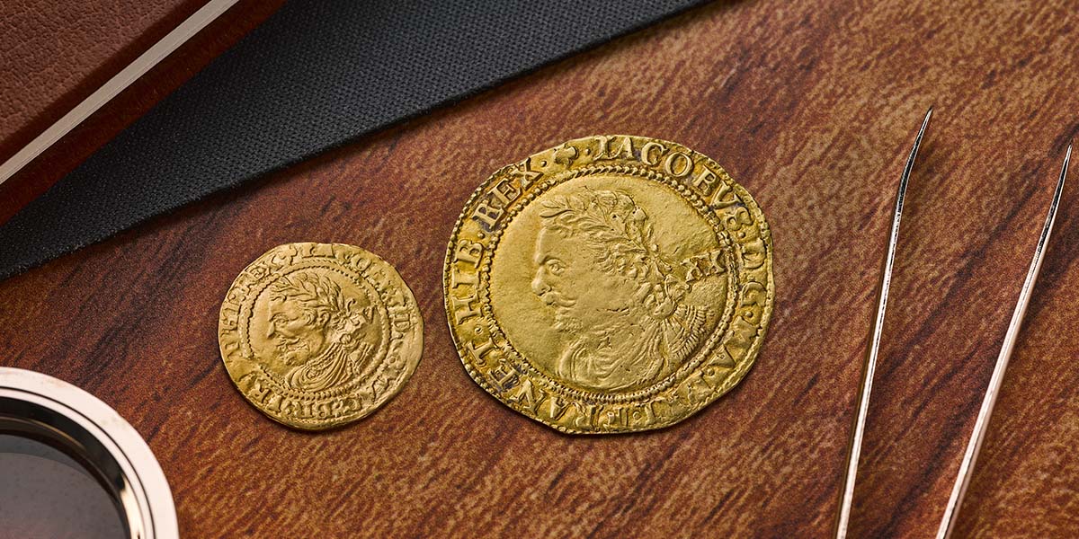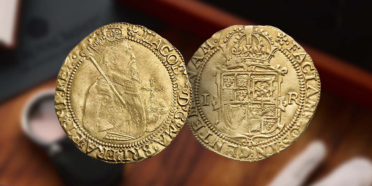 Similar to the angel, the laurel gained its name from a design that appeared on the obverse. Although the laurel initially had the same value as the unite – 20 shillings – these newer gold coins had a lighter weight. As they were to circulate alongside the earlier unite coins, it was decided that a new coinage portrait of James I would help the public to distinguish between the two. This new coinage portrait featured a laureate design similar to the Roman coins of the past, and earned the coin the name of ‘laurel’.