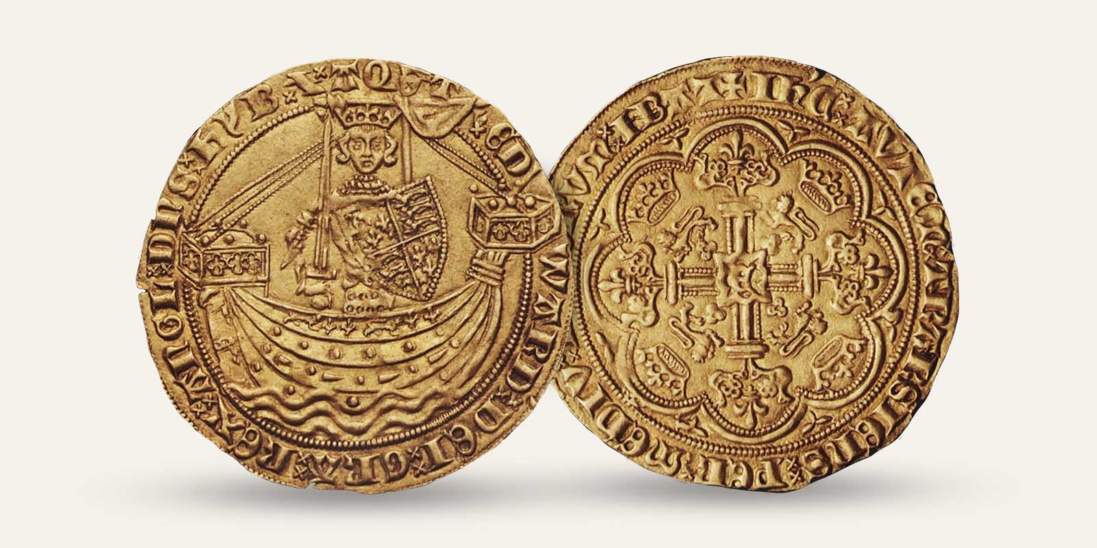As a coin intended to reach foreign shores to represent King Edward III and the entire British monarchy, it was designed to make a statement. The ornate depictions were incomparable to previous British coin designs. The obverse features Edward standing aboard a ship, holding a sword and shield in a show of strength. Its reverse bears an elegant quatrefoil filled with intricate depictions of detailed crowns, lions and feathers. This is a coin that was meant to be seen and marvelled at as British merchants travelled around the world.