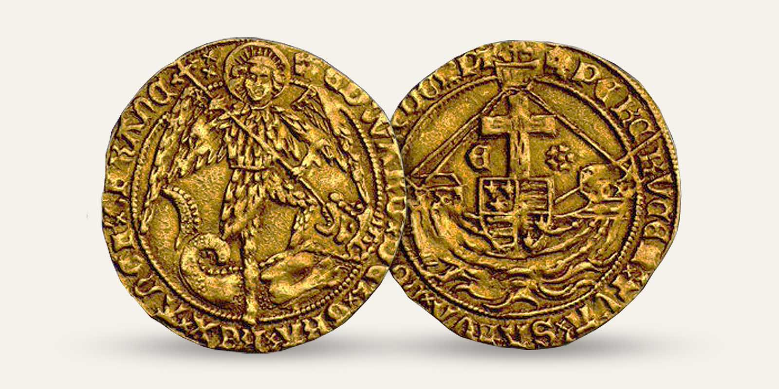 The ‘angel’ gold coin was introduced by Edward IV in 1465, and some consider it the first iconic British coin. Its impact on society went further than just currency as a mythology grew around the fine coin.