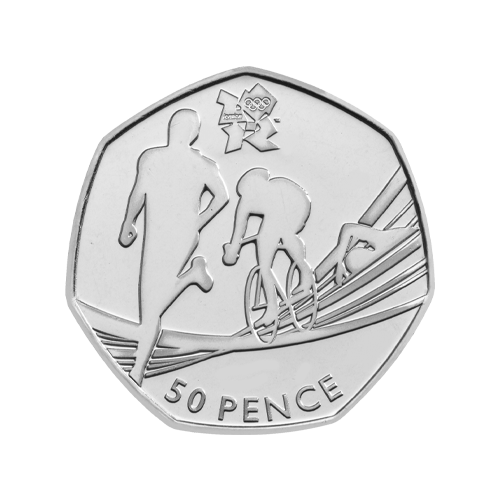 The star of the Beatrix Potter collection is undoubtedly Peter Rabbit™. In 2018, he hopped onto British coins for another adventure that endeared the plucky rabbit and his family to the public once more. The collection saw Proof and Brilliant Uncirculated coins struck as well as the circulating coins you can find in your change today. The rare Peter Rabbit 50p coin features the famous bunny munching on radishes after another near miss in Mr. McGregor’s garden. Designed by Emma Noble, a product designer at The Royal Mint, the reverse of the coin features a playful image that brings Peter Rabbit’s personality to life in all his mischievous glory. An official licensed product endorsed by Frederick Warne & Co., the coin boasts an unmistakable image from many people’s childhood.6. Olympic Triathlon 2011
