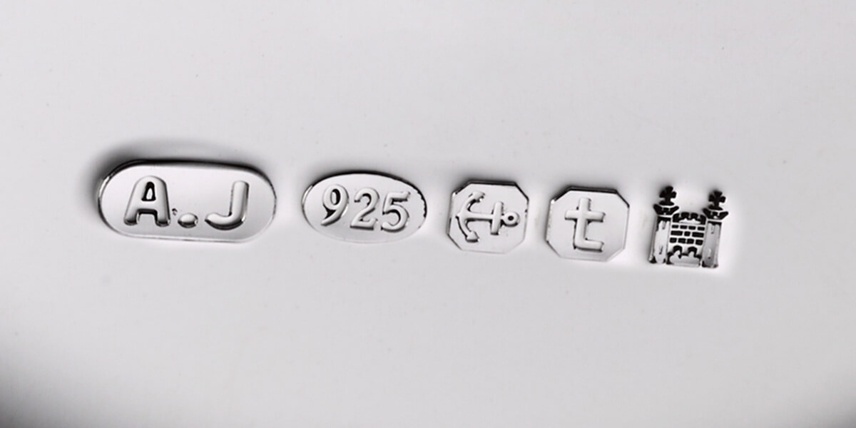 There are several different marks included as part of the hallmarking process which can help to identify who sent the item for hallmarking, where the item was hallmarked, which precious metal has been used to make the item, and the fineness of the item. Typically, there is minimal space between markings, and a standard hallmark tends to appear in a horizontal line.