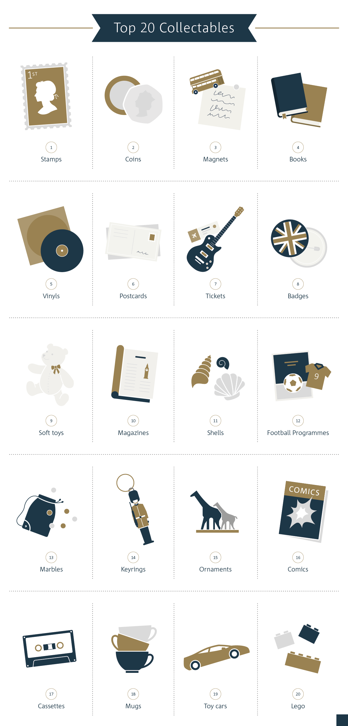 This makes coins the second most popular collectable just after stamps, which topped the results with 38%. Fridge magnets, books and vinyl records made up the remaining top five items that Brits love collecting.