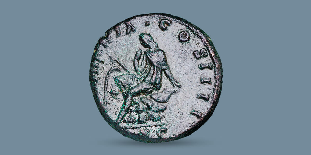 In the second and first centuries BCE, Roma became the most popular image honoured on silver denarii, Rome’s principal silver coin. The Romans extended the practice of honouring deities or mythical figures on coinage throughout their conquered territories, with the figures appearing as female rather than male.