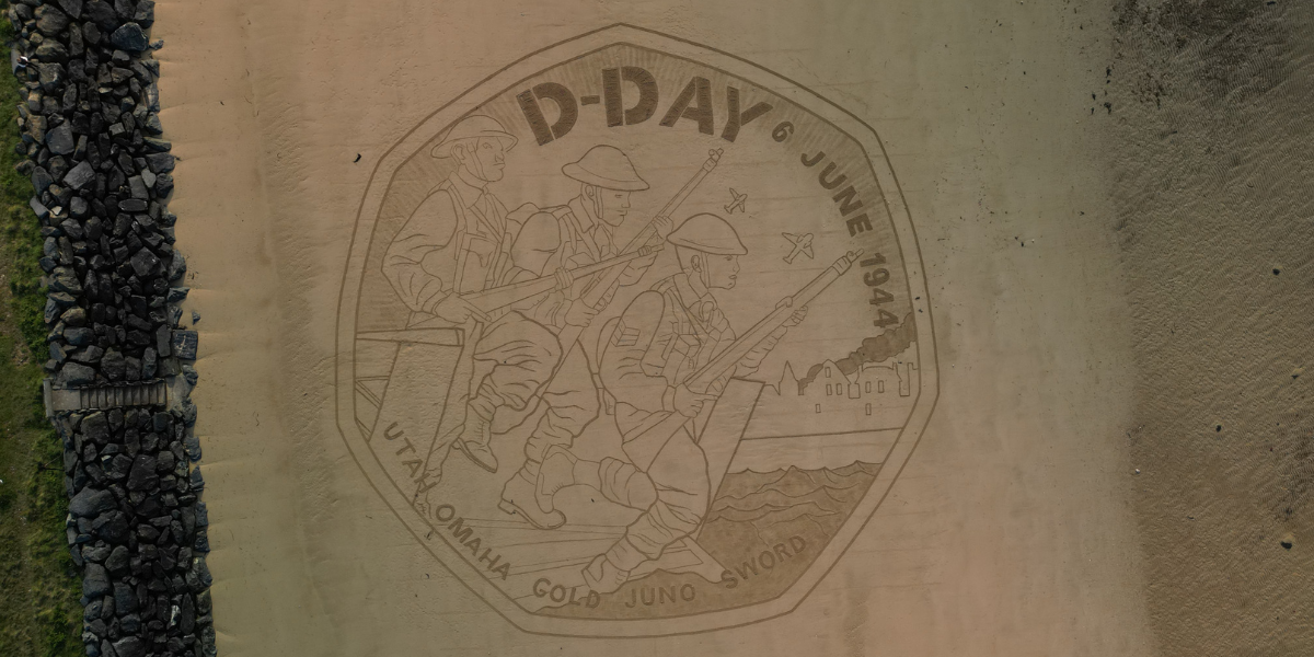 “This project has been extremely special. The Royal Mint’s commemorative coin marking the 80th anniversary of D-Day is a fitting tribute to all that served during World War II. My team and I feel very fortunate to have played a role in helping to translate the craftmanship seen in the design of this coin into a piece of sand art on one of the beaches where troops landed.”