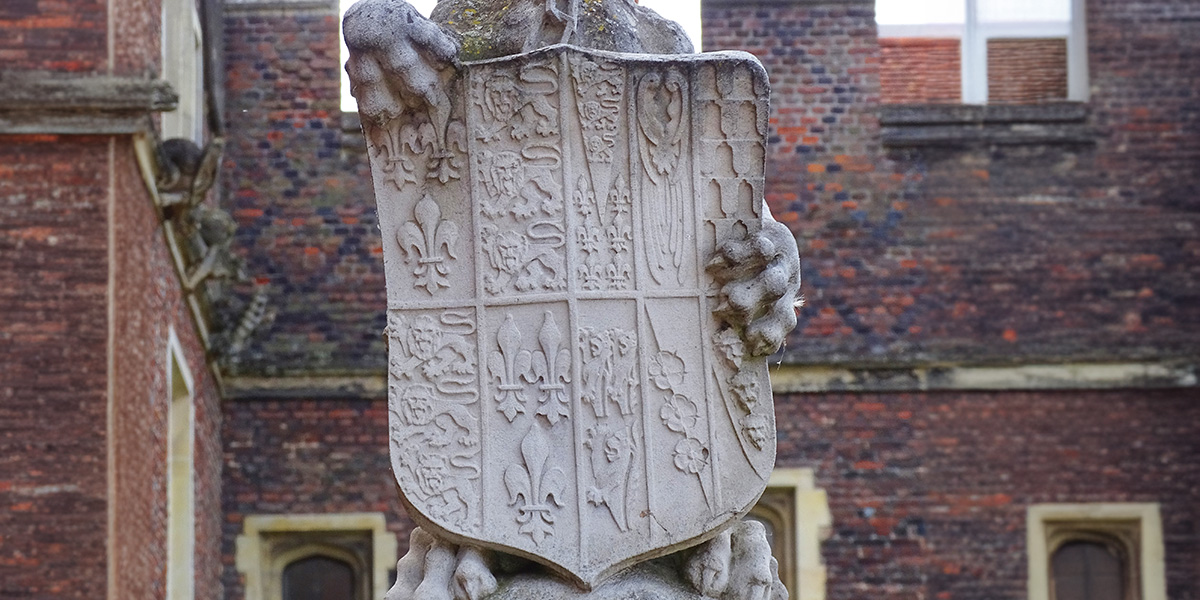 The dexter, or the left side of the shield when facing towards it, splits Henry VIII’s Arms into four – an amalgamation of those belonging to his ancestors before him – kings and queens, lords and ladies – thus proving his rightful position on the English throne. The sinister, or the right side of the shield, features Jane Seymour’s Coat of Augmentation, which portrays her descent from five different families who bore Coats of Arms.