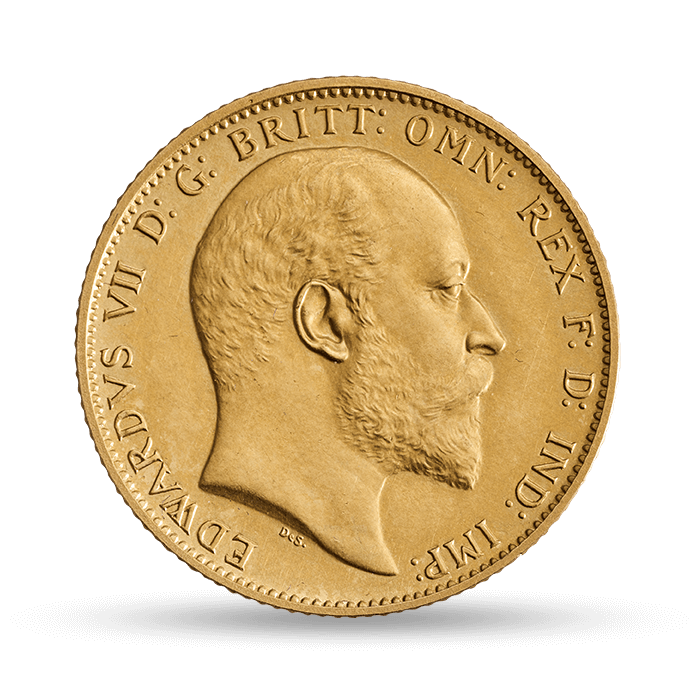 The 1902 Edward VII Sovereign features a portrait of Edward VII, facing right, by George William De Saulles on the obverse, whilst the familiar St George and the dragon design by Benedetto Pistrucci appears on the reverse of the coin. Sadly, De Saulles passed away suddenly just a year later, in July 1903, at the age of just 41.