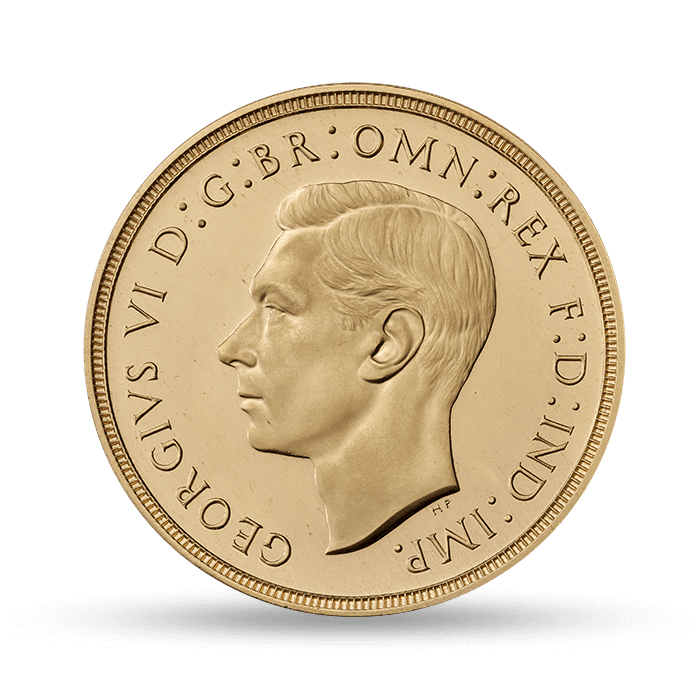 Due to the abdication of his brother, Edward VIII, George VI faces left, much like George V, in Humphrey Paget’s portrait of the monarch that features on the George VI Sovereign. Whilst we did not release new coinage into circulation during Edward VIII’s brief reign, a decision was made that George VI’s portrait should be prepared as if Edward VIII coinage had been produced, which would have shown the monarch facing right. As George VI faces left in his portrait, this decision ensured the continuation of the numismatic tradition of a successive monarch facing the opposite direction to their predecessor on coins.