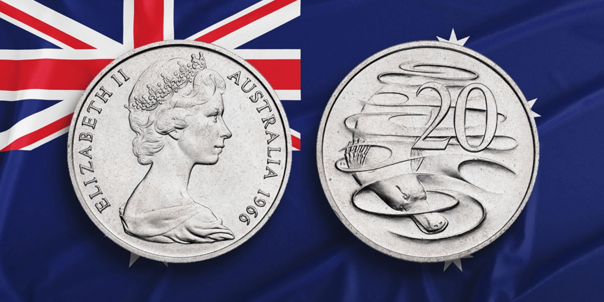 When Australia changed over to a decimal coinage of dollars and cents in 1966, The Royal Mint was again involved in the production of master tools and coins to assist the newly-opened Royal Australian Mint in Canberra. The decimal coins feature an attractive series of wildlife designs by Stuart Devlin, among them a duck-billed platypus on this twenty-cent piece.