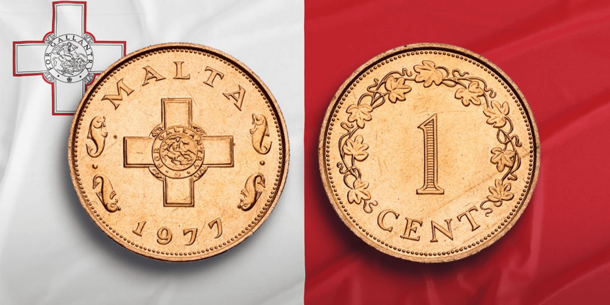 Shown here is the bronze one cent piece, with its representation of the George Cross famously awarded by George VI in acknowledgement of the fortitude and gallantry of the people of the island during the Second World War.