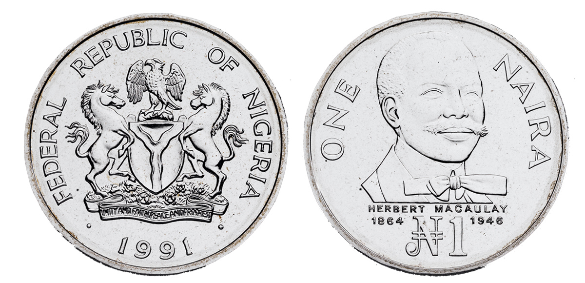 Nigeria now has a mint of its own, but The Royal Mint has on occasion provided assistance in the form of coins, blanks and dies. Shown here is a 1 naira piece of 1981 with its portrait of Herbert Macaulay, the famous Nigerian nationalist, who was also an engineer, an architect, a journalist and a musician.