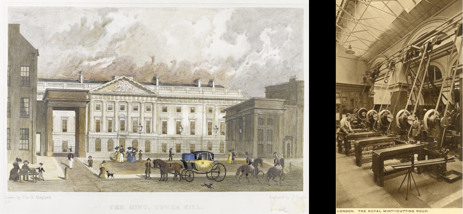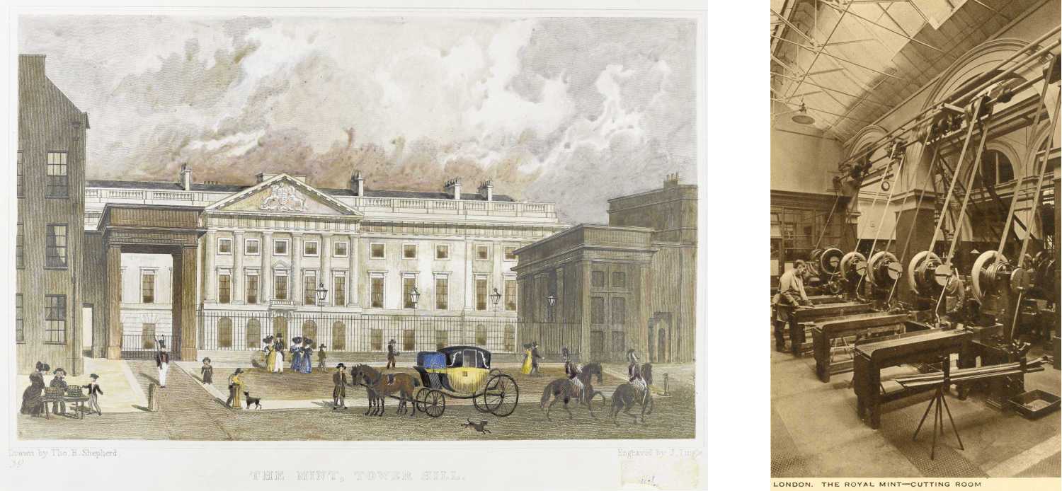 Despite The Royal Mint’s convenient location within a secure royal fortress, advances in technology eventually meant that new machinery would not fit into the cramped site in the Tower of London. Due to The Royal Mint’s expansion and increasing demands, a new custombuilt mint was erected a few hundred yards away, at Tower Hill.