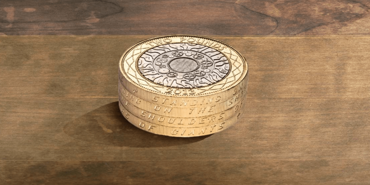 As higher value coins tend to be thicker, they are able to take letters and the edge inscriptions around the £1 and £2 coins play an important role in making them more difficult to counterfeit. Careful consideration goes into deciding the words to use and different designs are often given different inscriptions, complementing the reverse image.