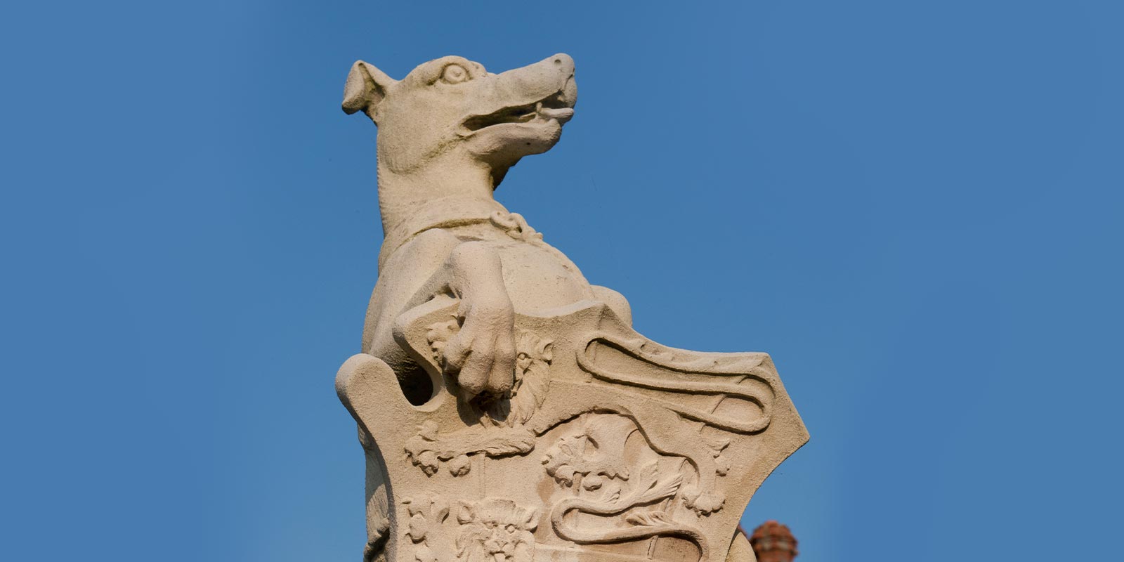 The Royal Family has favoured dogs as pets for centuries. Adopted as a heraldic symbol by Edward III, the greyhound symbolises loyalty, honour and celerity. It is said that Henry VIII attached a special importance to the Greyhound of Richmond, since it was a heraldic emblem adopted by both the Lancasters and the Tudors and thus served to emblemise the Tudors’ dynastic right to the throne of England. With a striking appearance, which includes a slim build and protruding ribcage forming an elegant shape, the beast on the Moat Bridge fixes the viewer with an attentive gaze, ears pricked at the ready and alert to honour any given command.