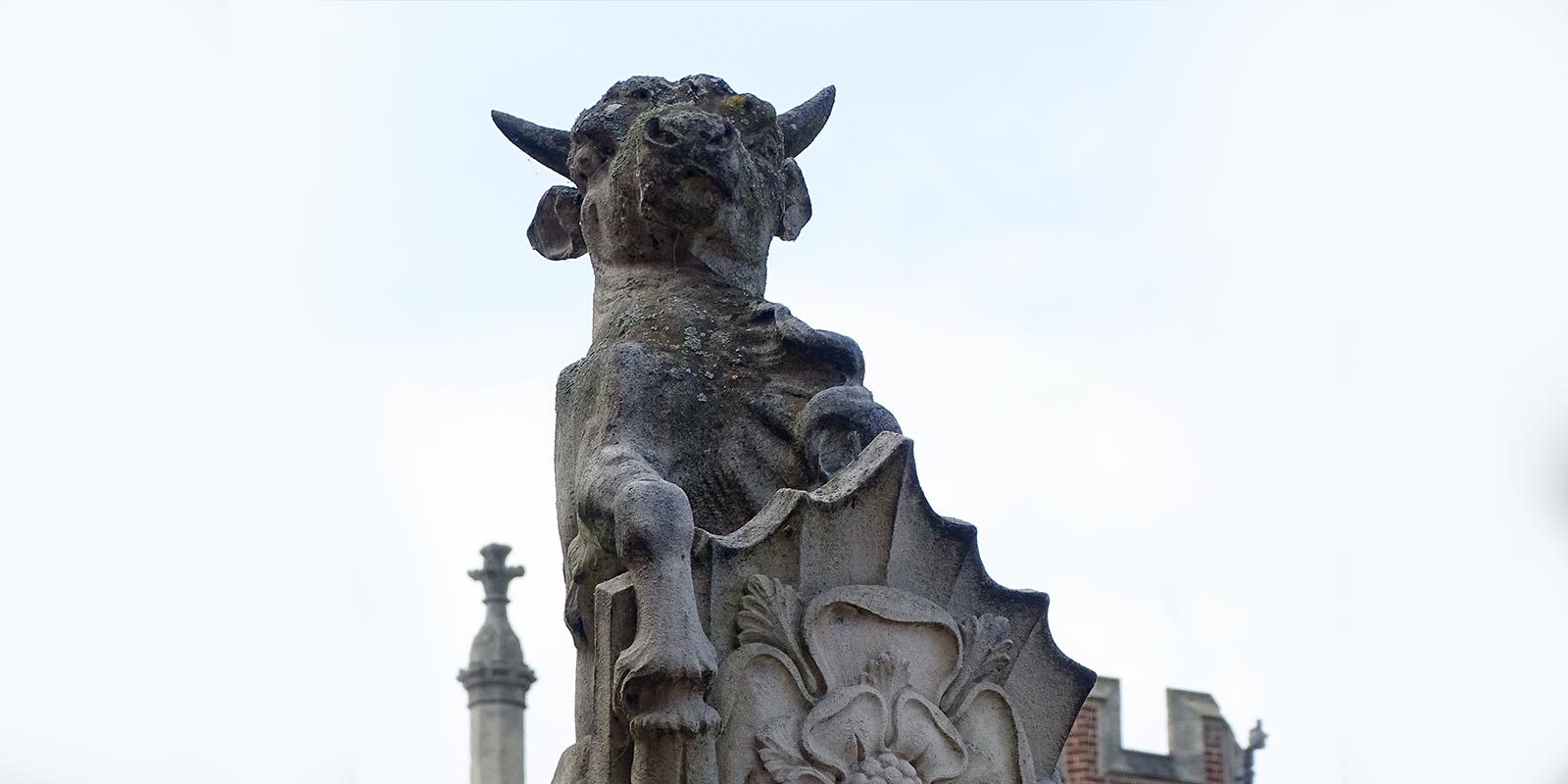 The Bull of Clarence is a mighty, formidable beast and a heraldic symbol affiliated with the rise of the House of York during the fifteenth century. On its shield, the bull bears the Tudor Rose, which was created by Henry VII to symbolise his marriage to Elizabeth of York and the union of the two great houses, the House of York and House of Lancaster. Intent on establishing the might and power of the Tudor dynasty, as well as legitimising his position on the throne of England, Henry VIII chose the heraldic beast to flank the Moat Bridge leading into Hampton Court Palace, no doubt as an indication to anyone who entered that he was a true and formidable monarch.