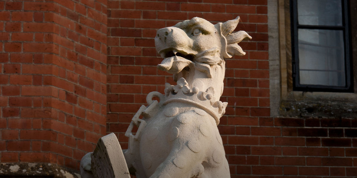 Designed by Reverend E. E. Dorling, the new King’s Beasts statues were modelled at Messrs. Farmer & Brindley’s studios in London by craftsman George Wilson. Wilson’s genuine love of heraldry and appreciation of the decorative style made the new stone beasts a true work of art. The new beasts, like the originals, held heraldic shields and their designs were carefully considered. Unfortunately, the original stone did not weather well, resulting in replicas being made in the 1950s, which continue to guard the entrance to Hampton Court Palace to this day.